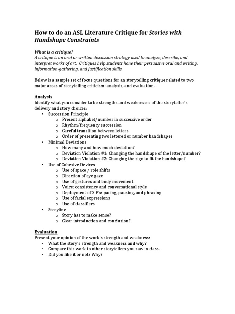 Sample Story For Critiquing : How To Criticize A Short Story In Literature - However, if that's not an option, online critique groups such as scribophile are an excellent option.. I read best american short stories and best australian short stories as a starting point, and then have my favorite writers. Writing a critique paper on a short story. In fact, critiquing workshops are often part of. As well as a book critique, an article one consists of: This handout offers some helpful hints for writing the first essay—the critique.