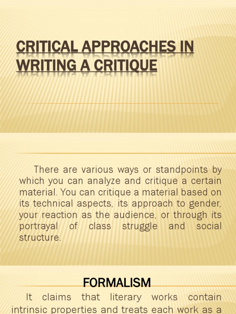 They are quick to read and give you a flavor for my approach to your work. It is part of the writer's road, to thicken the skin. Only our examples and practice, pure practice. It takes a long time for a writer to get used to critiques. This page is intended for amateurs. Are elements/clues/details needed to propel the story presented in a way as to invoke tension (make the reader keep reading)? Given the large number of things that i look at in a story, any form that i had would simply be too long to be workable. A critique isn't just saying i hated it or it was the best play i ever saw, it is putting your thought down after carefully considering all of the elements of the production. A lot of students are faced with the problem of writing reviews for the first time. Unlike with a review, the main focus here is on your analysis, not a narrative of what the article is about. Here are two sample critiques, one for fiction and one for nonfiction. Use them as a guide for your work. Short story review examples from professional writers.